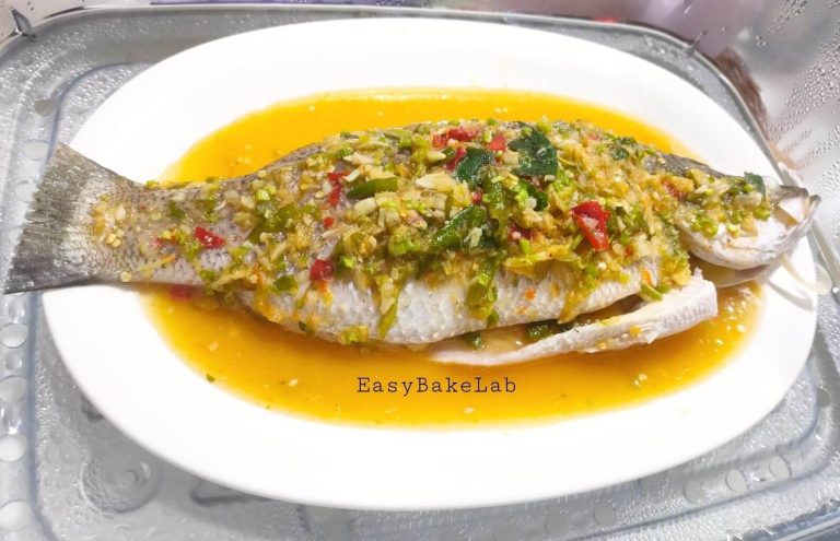 - Lumurkan ikan dengan 1 biji air limau nipis. Kemudian stimkan 5 minit. Buang air lebihan stim ikan.